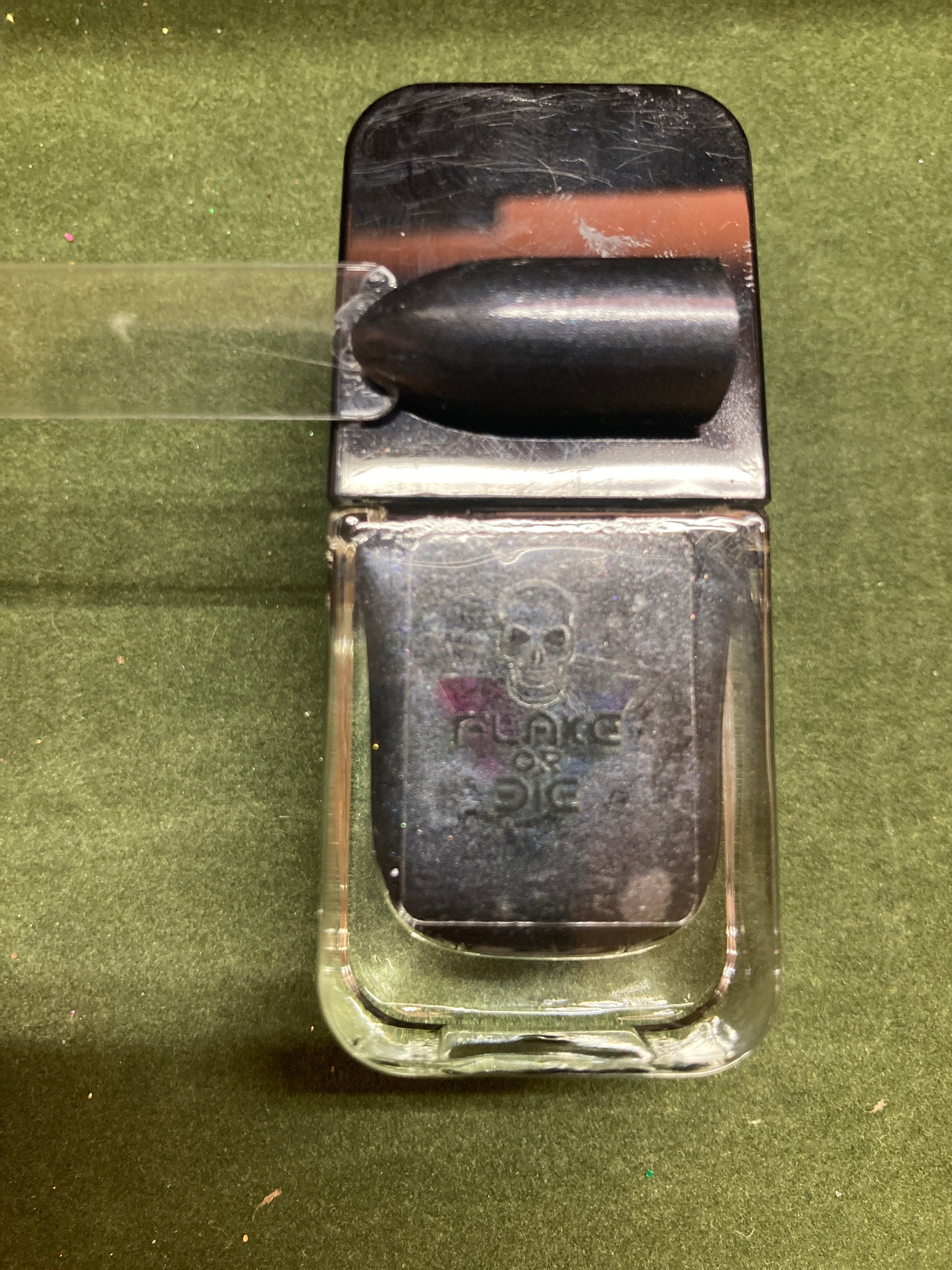 Pirate Flag, by Flake or Die, is a black pearl pigment is our deep carbonized black color. Create a stark and ominous design with a range from dark grey to pitch black depending on the color of your base. This pearl works really well for a basecoat or add a cool subtle shimmer over black. You can also add an intriguing smoky effect when applied with an airbrush.